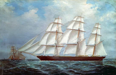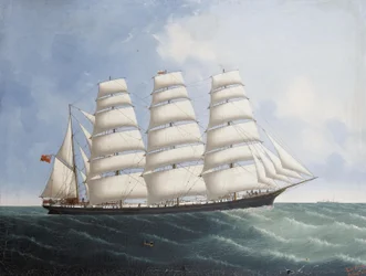 De volgetuigde koopvaarder 'Loch Long' op zee onder vol tuig(The full-rigged merchantman ‚Loch Long‘ at sea under full sail)Lai Fong |