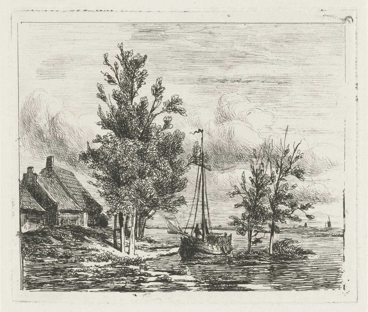 Rivierlandschap met zeilschip en boerderij(River Landscape with Sailboat and Farm)Lambertus Hardenberg(print maker) |