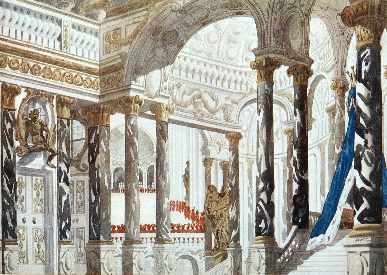Decorontwerp voor De Doop, uit Doornroosje, 1921(Scenery design for The Baptism, from Sleeping Beauty, 1921 )Leon Bakst |