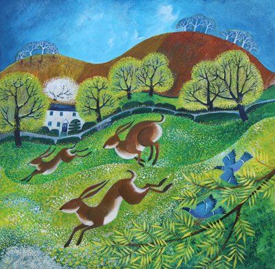 Lente hazen 2, 2025 (acrylverf op doek)(Spring Hares 2, 2025 (acrylics on canvas))Lisa Graa Jensen |