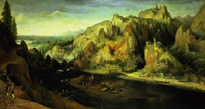 Berglandschap met een verrassingsaanval, c.1585(Mountain Landscape with a surprise attack, c.1585)Lucas van Valckenborch |