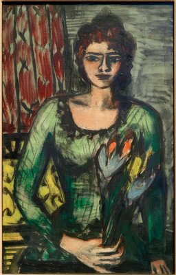Portret van Quappi (Beckmanns tweede vrouw Mathilde) met groene trui(Portrait of Quappi (Beckmann's second wife Mathilde) with green sweater)Max Beckmann |