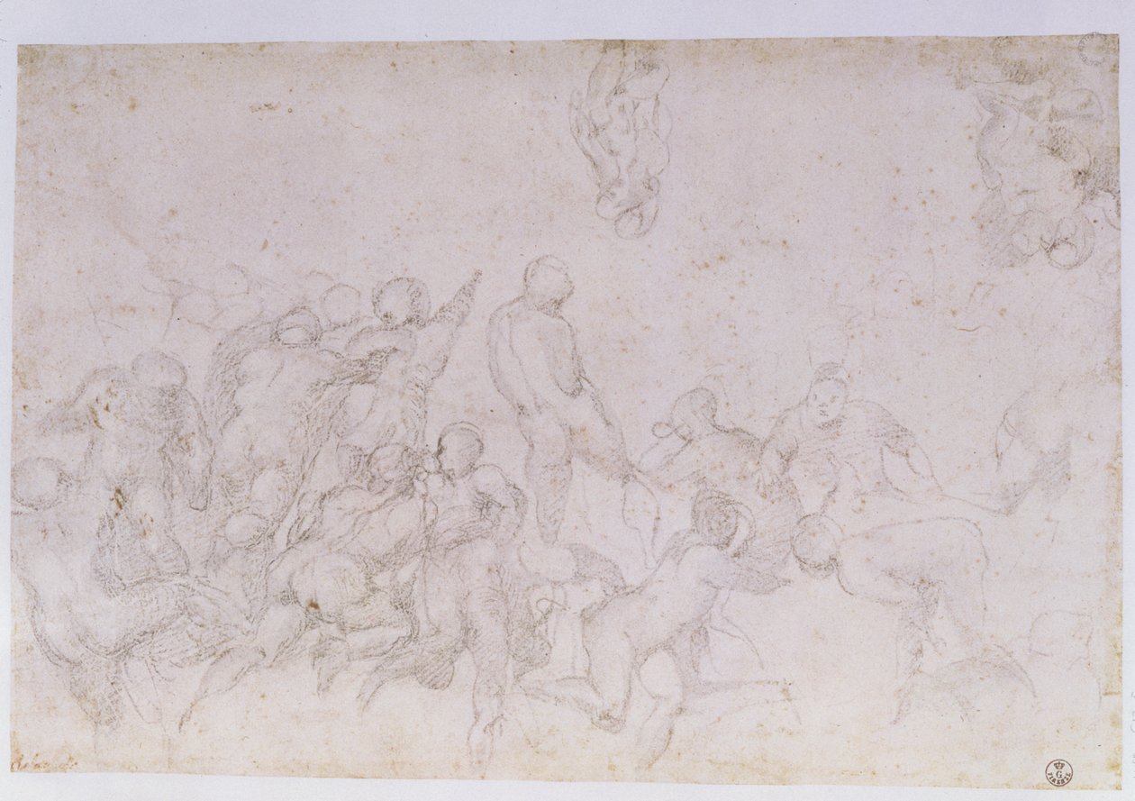Voorbereidende schets voor de 'Slag bij de Cascina' en twee extra schetsen(Preparatory sketch for the 'Battle of the Cascina' and two additional sketches (charcoal on paper) (see also 18057 und 49880))Michelangelo Buonarroti |