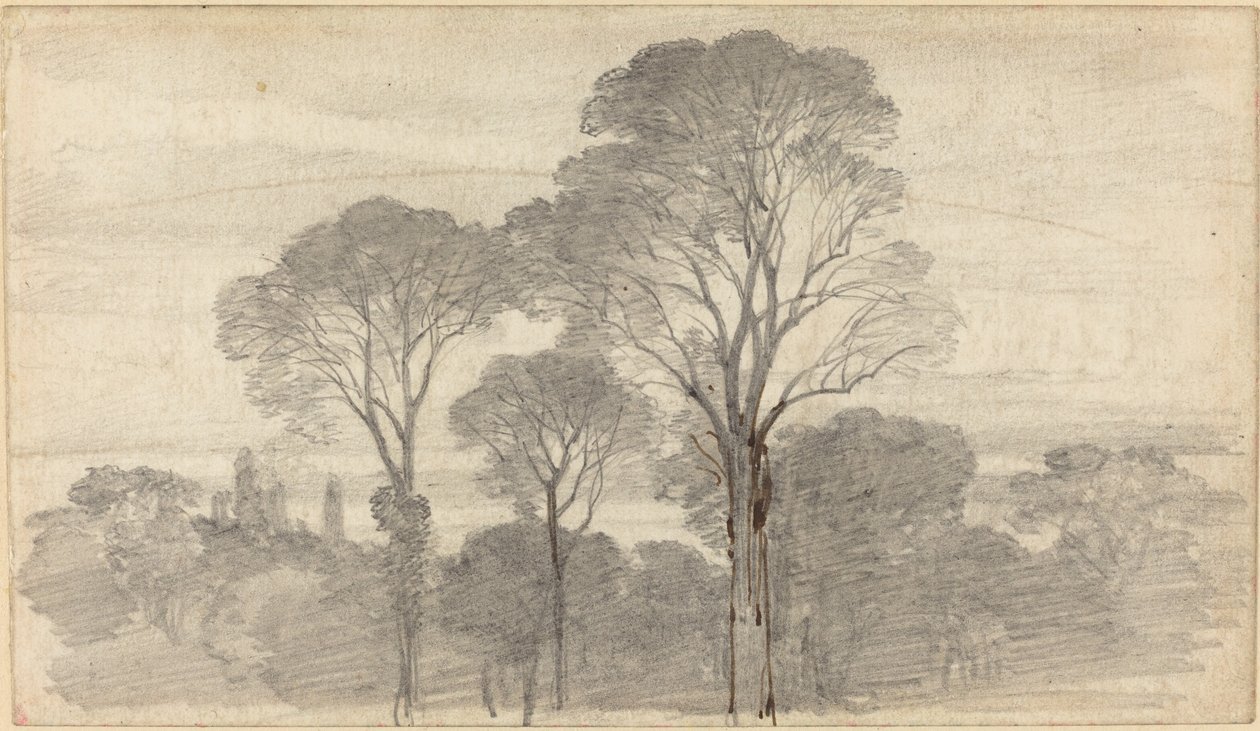 Een Avondlandschap met Hoge Bomen(An Evening Landscape with Tall Trees)Myles Birket Foster |