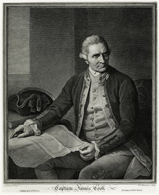 Kapitein James Cook, gegraveerd door W. Holl, uit 'The National Portrait Gallery, Volume IV', gepubliceerd ca. 1820(Captain James Cook, engraved by W. Holl, from 'The National Portrait Gallery, Volume IV', published c.1820 )Nathaniel Dance-Holland |