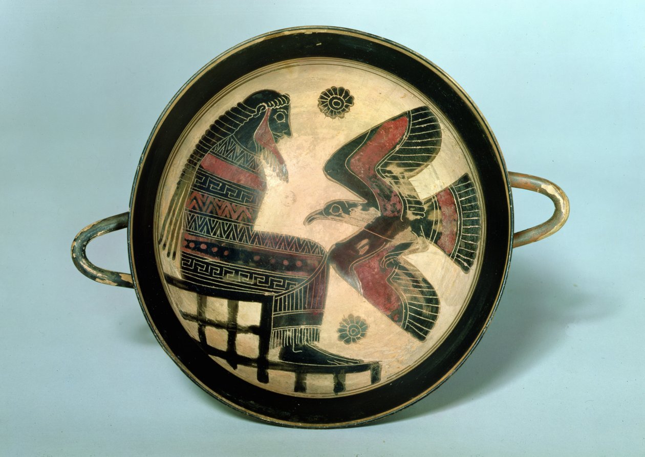 Laconische beker met Zeus en de adelaar, ca. 550 v.Chr. (keramiek)(Laconian cup depicting Zeus and the eagle, c.550 BC (ceramic))Naukratis Painter |