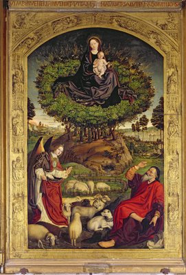 Madonna en Kind, centraal paneel van het Drieluik van Mozes en de Brandende Braamstruik, c.1476(Madonna and Child, central panel from the Triptych of Moses and the Burning Bush, c.1476 (see also 173010 und 232840-1))Nicolas Froment |