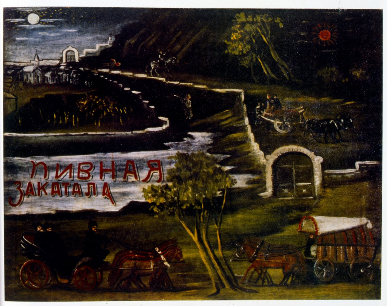 Een miljonair passeert een arme boer(A millionaire passing a poor peasant)Niko Pirosmani |