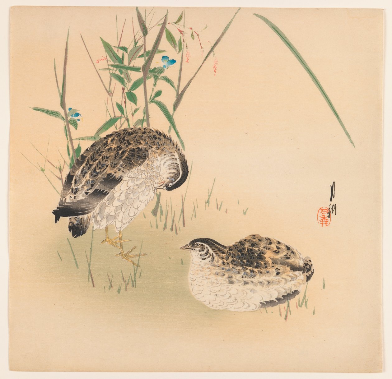 Twee kwartels, c.1890-1910(Two Quail, c.1890-1910 (woodblock colour print))Ogata Gekko |