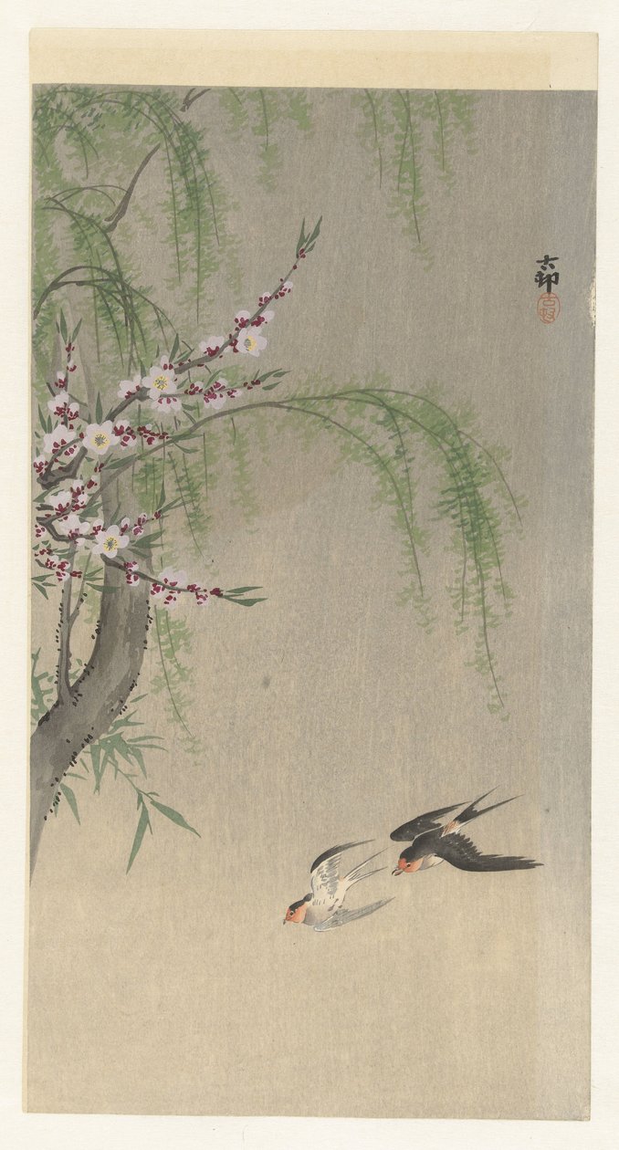 Zwaluwen in vlucht(Swallows in Flight)Ohara Koson(print maker),Matsuki Heikichi(publisher) |
