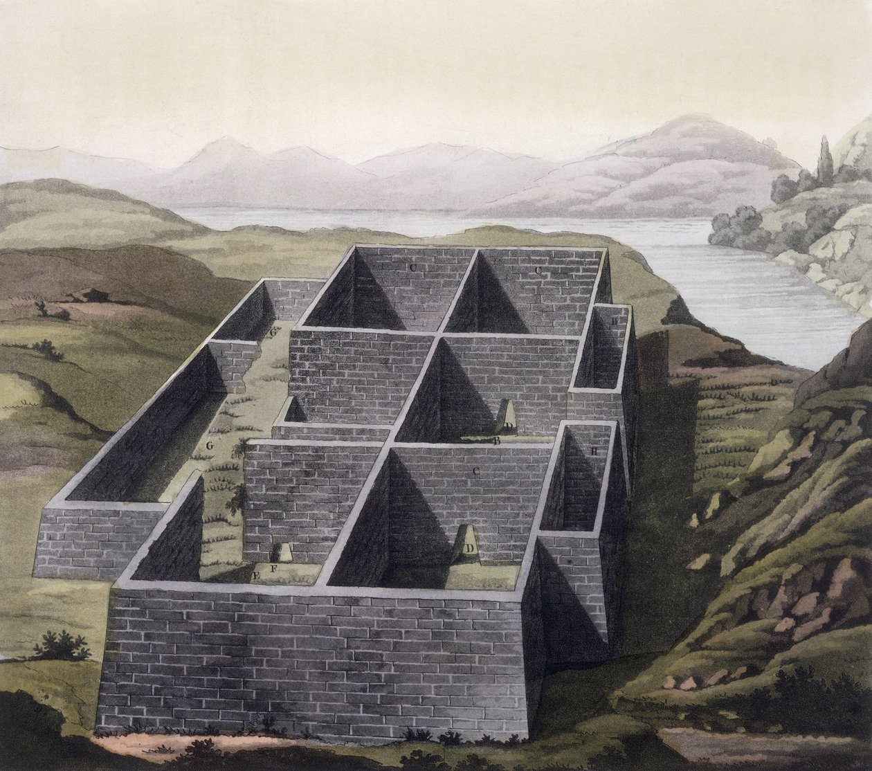 Resten van een Inca-paleis in Callo, Peru, uit 'Le Costume Ancien et Moderne', Volume II, plaat 23, door Jules Ferrario, gepubliceerd c.1820s-30s(Remains of an Inca palace at Callo, Peru, from 'Le Costume Ancien et Moderne', Volume II, plate 23, by Jules Ferrario, published c.1820s-30s )Paolo Fumagalli |
