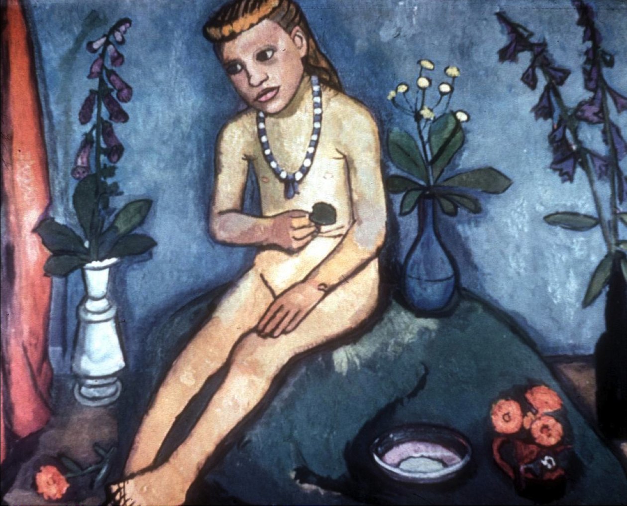Zittend meisjesnaakt met bloemenvaas(Sitzender Mädchenakt mit Blumenvasen)Paula Modersohn-Becker |