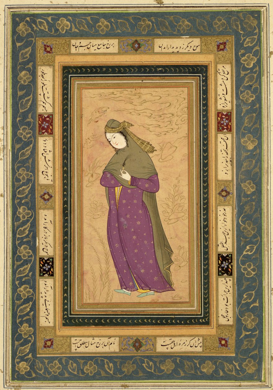 Meisje met een aigrette, uit het Grote Clive Album, ca.1620-30(Girl holding an aigrette, from the Large Clive Album, c.1620-30)Persian School |