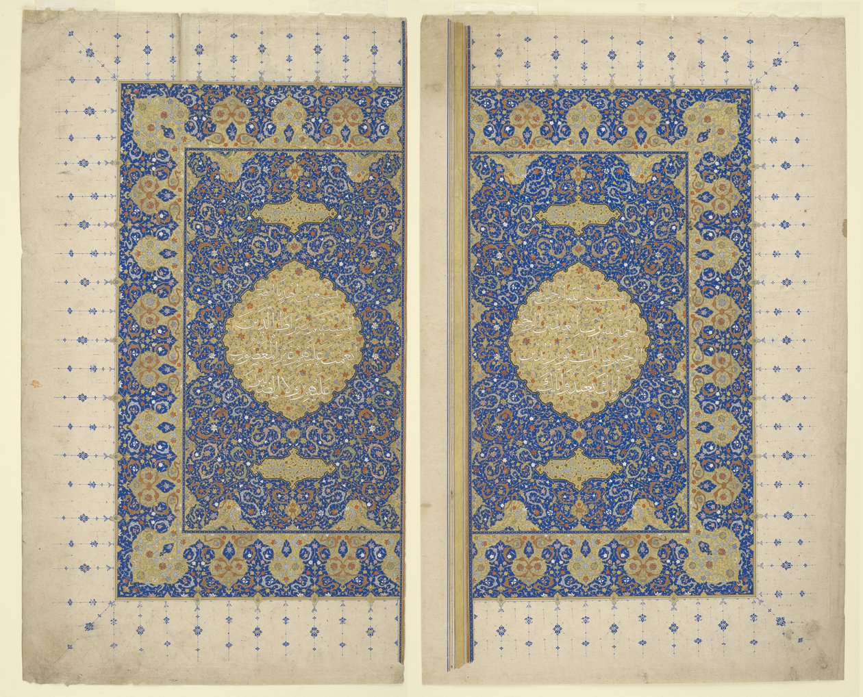 Dubbelpagina frontispice uit een Koran, ca. 1550(Double-page frontispiece from a Qur"an, c.1550)Persian School |
