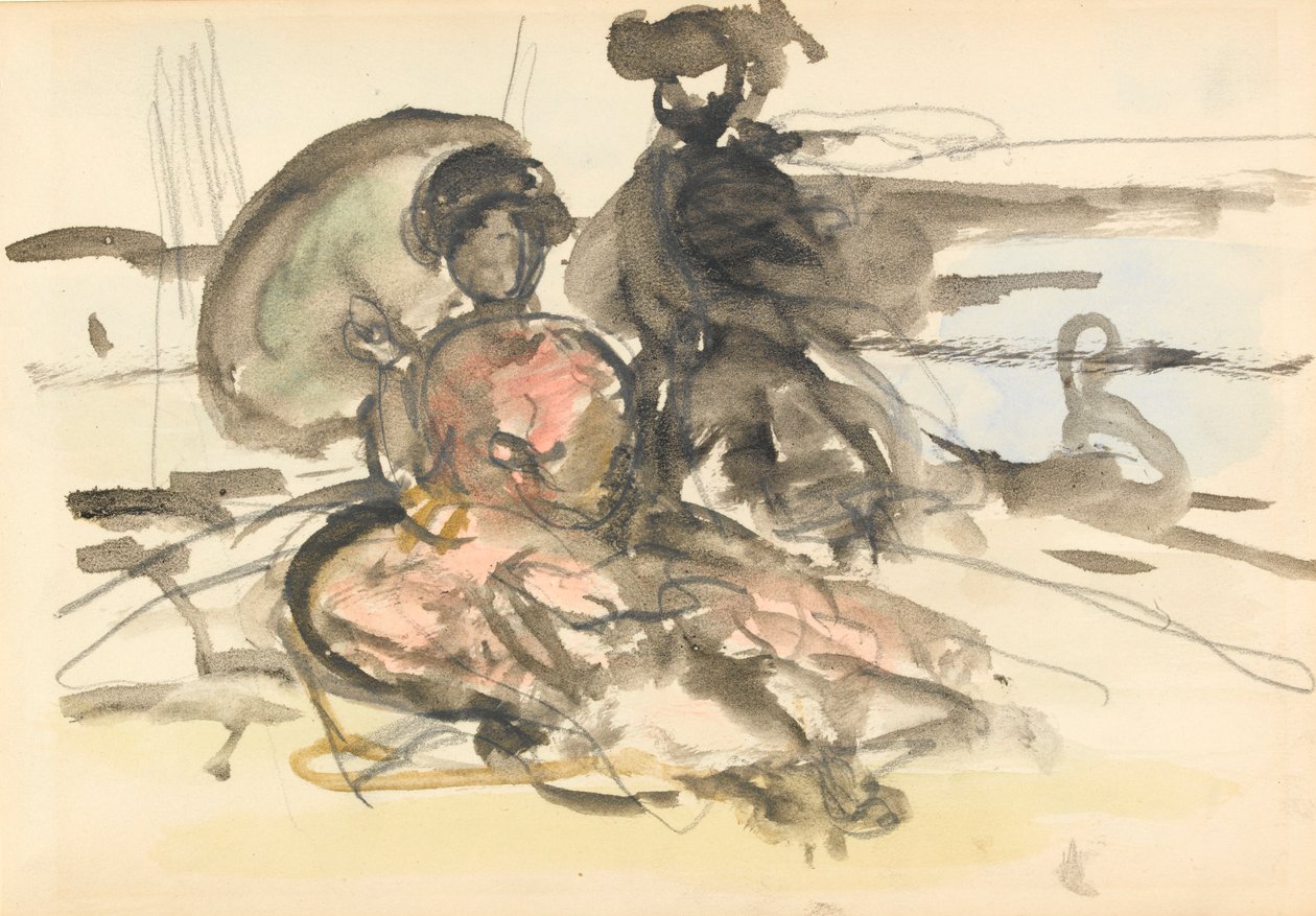Figurenstudie: twee vrouwen zittend aan een rivier(Figure Study: two women seated on a river bank (graphite und wc on paper))Philip Wilson Steer |