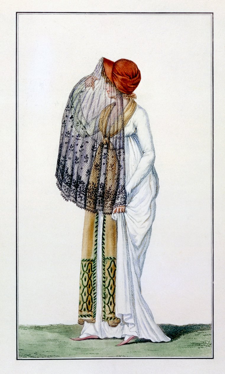 Damesdagjurk met sluier uit Journal des Dames(Ladies' day dress with veil from Journal des Dames, 1799 )Pierre de La Mesangere |