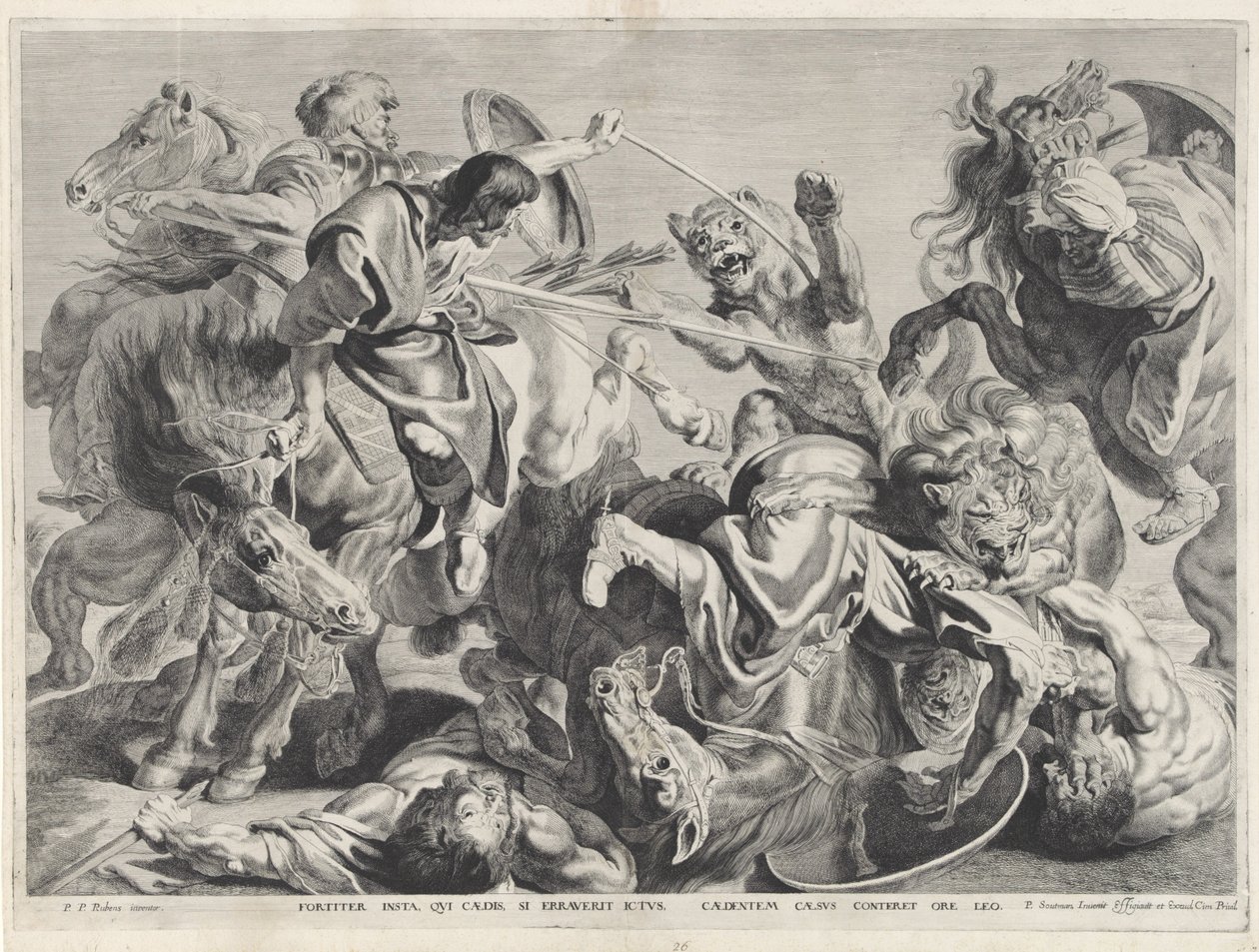 Jacht op leeuwen(Lion Hunt)Pieter Claesz. Soutman(print maker),Peter Paul Rubens(after painting by),Pieter Claesz. Soutman(publisher) |