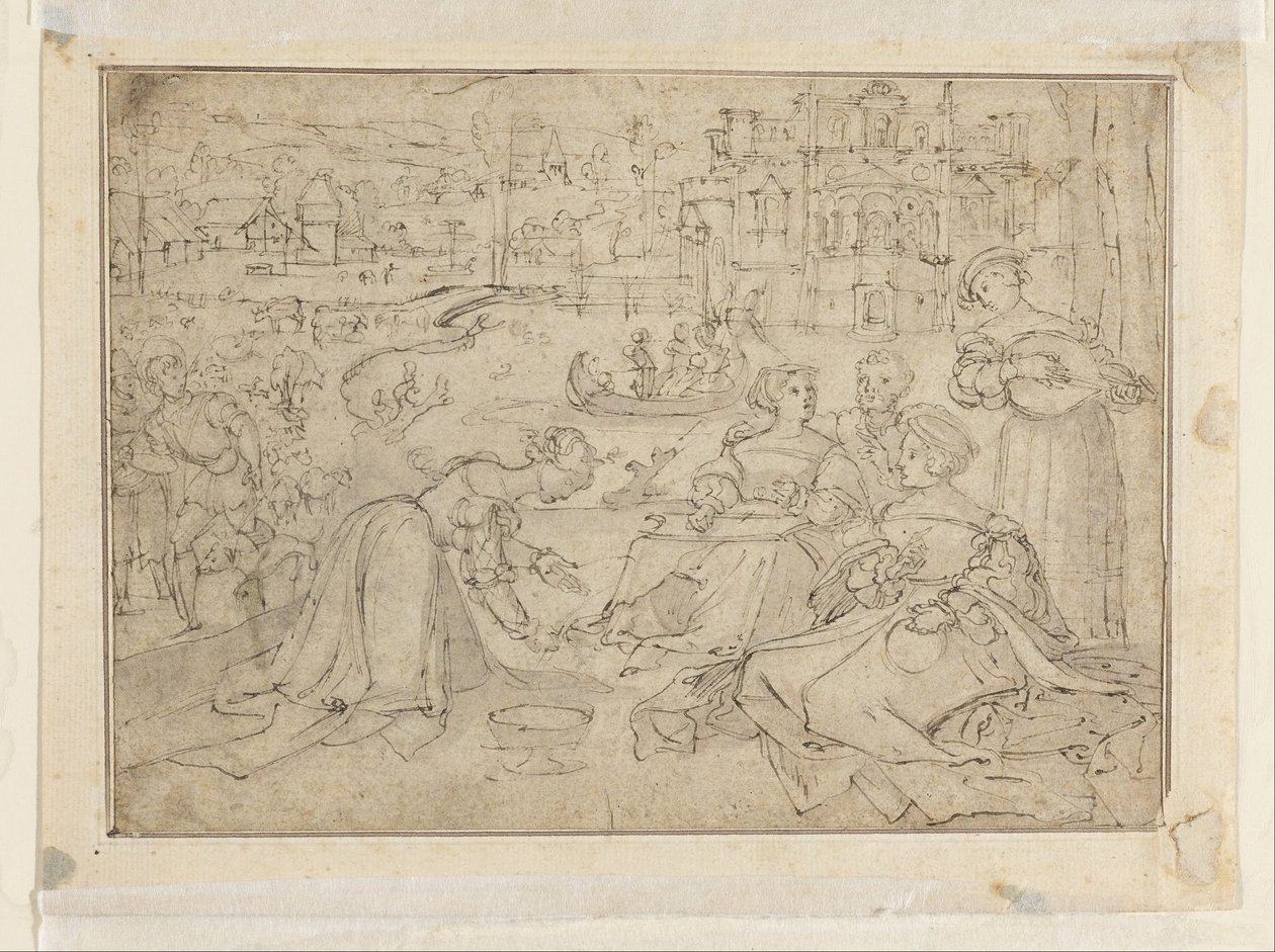 Recto: De maand april (figuren in een park bij een kasteel)(Recto: The Month of April (Figures in a park near a castle))Pieter Coecke van Aelst |