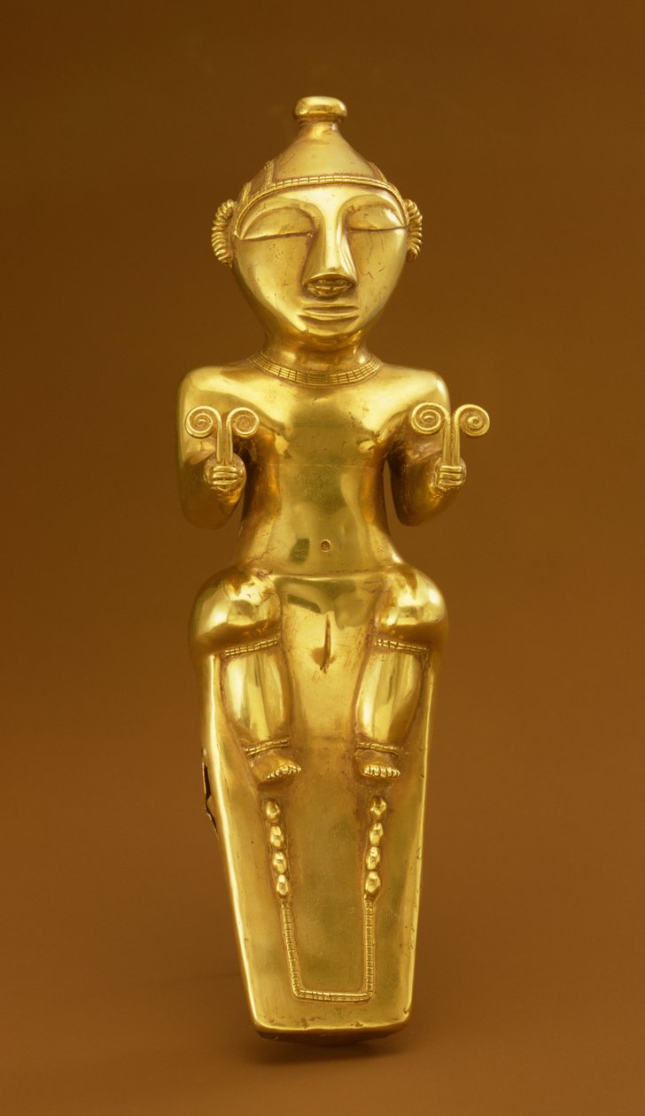Quimbaya kalkfles, uit Colombia(Quimbaya lime flask, from Colombia (tumbaga gold))Pre-Columbian |