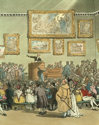 Christie's Veilingzaal, illustratie uit 'Microcosm of London' door R. Ackermann, 1808(Christie's Auction Room, illustration from 'Microcosm of London' by R. Ackermann, 1808 )Pugin and Rowlandson |
