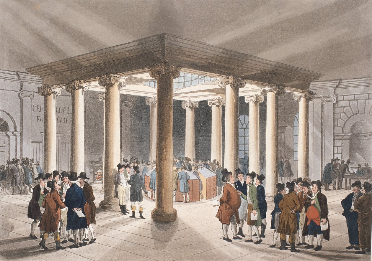 De Kolenbeurs, Lower Thames Street uit Ackermann's 'Microcosm of London'(The Coal Exchange, Lower Thames Street from Ackermann's 'Microcosm of London')Pugin and Rowlandson |