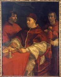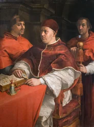 Leo X met kardinalen Giulio de Medici en Luigi de Rossi, 1517-18(Leo X with Cardinals Giulio de Medici and Luigi de Rossi, 1517-18 )Raffaello Sanzio Raphael |
