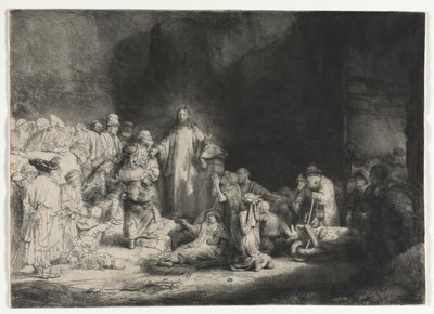 Christus predikend in een rotsachtig landschap, ca. 1645(Christ preaching in a rocky landscape, c.1645 )Rembrandt van Rijn |