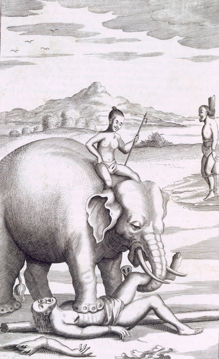Een executie door een olifant(An execution by an elephant, pub. 1681. )Robert Knox |
