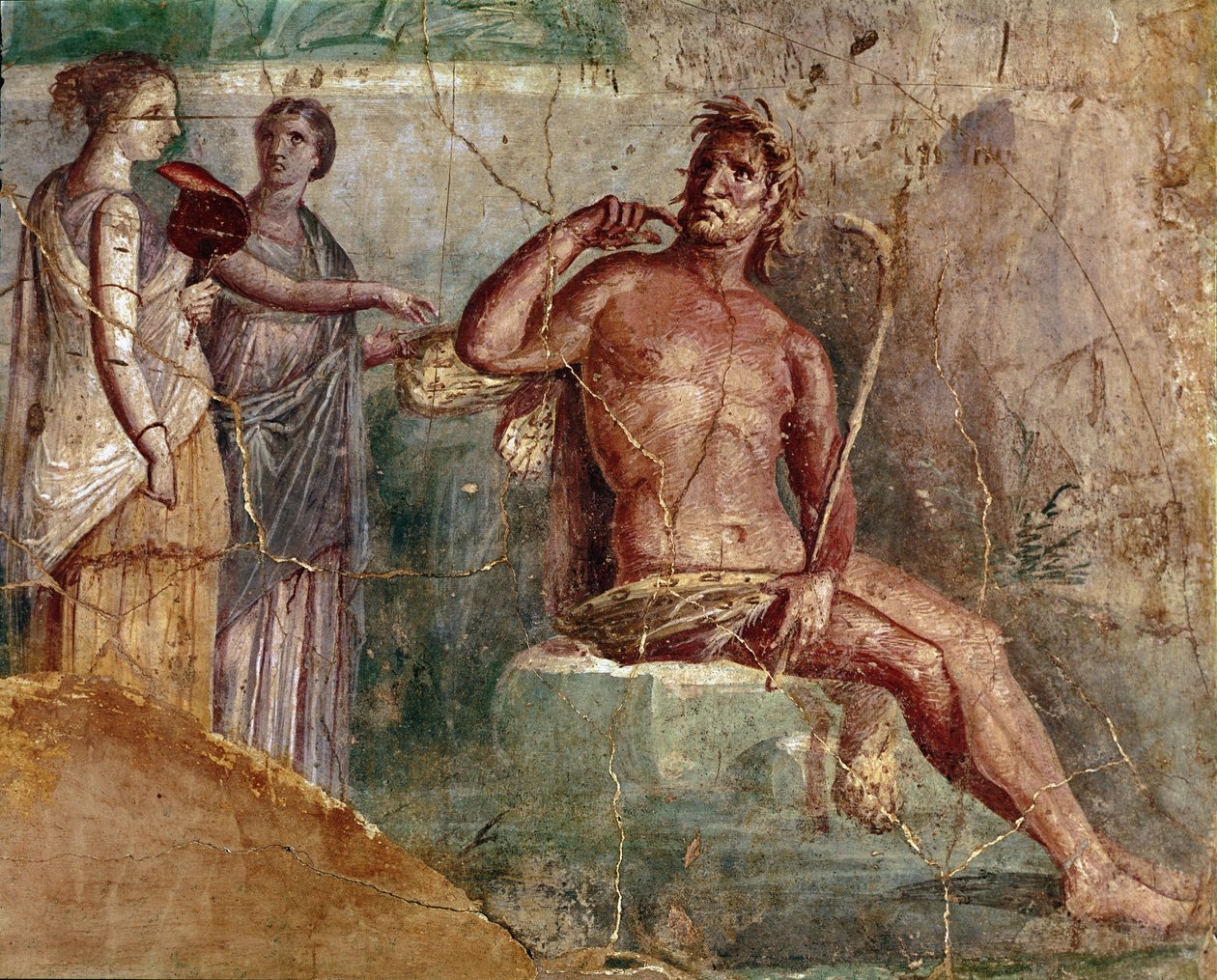 Galatea, met een waaier, en Polyphemus, uit Pompeii, 60-80 AD(Galatea, with a fan, and Polyphemus, from Pompeii, 60-80 AD)Roman |