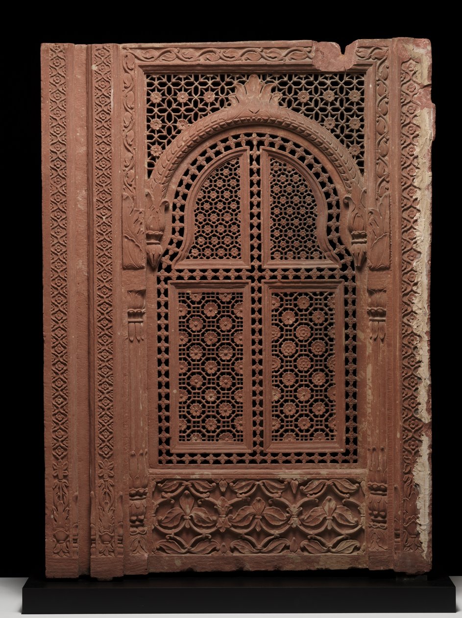 Paar Jali-schermen, c.18e eeuw(Pair of Jali screens, c.18th century (sandstone))School Mughal |