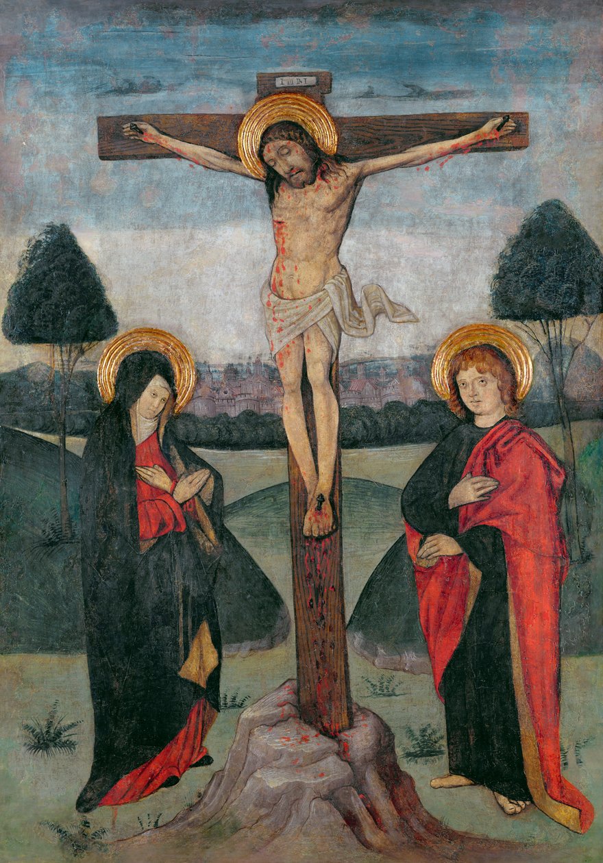 Christus aan het kruis tussen de Maagd en St. Johannes(Christ on the Cross between the Virgin and St. John (tempera on panel))Spanish School |