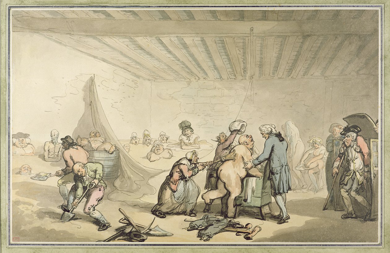 Dr Graham's Cold Earth and Warm Mud Bathing Establishment in Fleet Street, Londen(Dr Graham's Cold Earth and Warm Mud Bathing Establishment at 26 Fleet Street, London (pen und ink with wc over graphite on paper))Thomas Rowlandson |