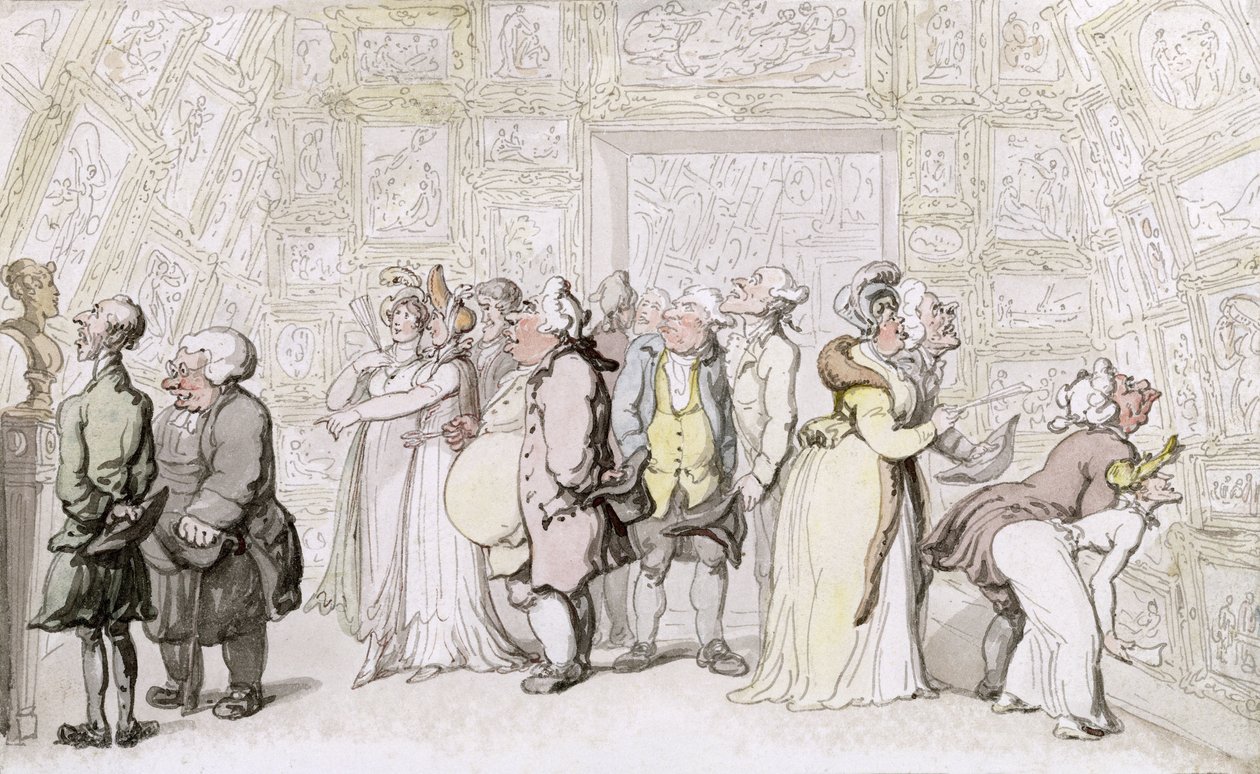 Bezichtigen bij de Royal Academy, c.1815(Viewing at the Royal Academy, c.1815 (pen, ink and wc on paper))Thomas Rowlandson |