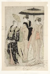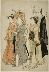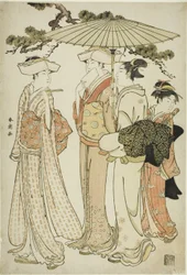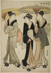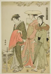 Courtisanes en bedienden Seiro niwaka De courtisanes Hanaogi, Segawa en Miyahito van de Ogiya Manzan van de Chojiya, uit de serie "Modellen voor mode: Nieuwe ontwerpen zo fris als jonge bladeren (Hinagata wakana no hatsu moyo)" De Courtisane Wakakusa van de Chojiya met Haar Begeleiders Asano en Midori, uit de serie "Modellen voor Mode: Nieuwe Ontwerpen zo Fris als Jonge Bladeren (Hinagata wakana no hatsu moyo)" Vrouwen die kersenbloesems bekijken Komurasaki van de Kadotamaya met begeleiders Hatsune en Utano Kaoru van de Shin-Kanaya, uit de serie "Modellen voor Mode: Nieuwe Ontwerpen zo Fris als Jonge Bladeren (Hinagata wakana no hatsu moyo)" Shioginu van de Tsutaya, uit de serie "Modellen voor Mode: Nieuwe Ontwerpen zo Fris als Jonge Bladeren (Hinagata wakana no hatsu moyo)" Acteurs Iwai Hanshirô IV, Ichikawa Monnosuke II en Sakata Hangorô III, in "Snowflakes: Het verhogen van de standaard in Izu" ("Mutsu no Hana Izu no Hataage") Drie courtisanes van Wakafune-ya House: Shiratsuyu, Isono en Isoji, ca. 1794 Het bezoek Dansers van Tachibana Straat, 1742-1815 Twee meisjes en een man die voorbijloopt: Tien Zichten van Hedendaagse Schoonheden Een Jonge Edelman, Zijn Moeder en Drie Dienaren, uit de serie "Een Brokaat van Oosterse Manieren (Fuzoku Azuma no nishiki)"