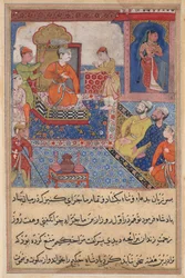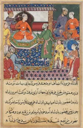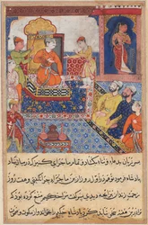 Pagina uit Verhalen van een Papegaai Tuti-nama: Tweeënvijftigste nacht: De koning geeft zijn dochter, ca. 1560 De zevenentwintigste nacht: Zarir en twee andere wevers verkopen stof aan een man met een beurs, uit Tuti Nama (Tutiname) ca. 1580 Anushirvan met een prinses, uit Folio uit een Yusuf u Zulaykha door Jami (gest. 1492); verso: Potiphar en Zulaykha op de Troon; recto: tekst, Khurasan, Iran, ca.1575 Pagina uit Verhalen van een papegaai Tuti-nama: Twintigste nacht: Drie vrijers vechten..., ca. 1560 Kublai Khan en zijn keizerin op de troon, uit een Jami al-Twarikh (of Chingiznama) Pagina uit Verhalen van een papegaai Tuti-nama: Zesenveertigste nacht: Het hof van de Raja van Ujjain, ca. 1560 Illustratie uit een Safavid Shahnama: Alexander, vermomd als gezant, wordt herkend door koningin Nushaba, Shiraz, Iran, 1650-1700 Keizer Babur aan het hof, Mughal-periode, regering van Akbar Pagina uit Verhalen van een papegaai Tuti-nama: Achtste nacht: De jonge prins wordt gepresenteerd..., 1558-1560 Pagina uit Verhalen van een Papegaai Tuti-nama: Zesendertigste nacht: Mahrusas huwelijk..., ca. 1560 Timur & Sultan Bayazid I (Yilderam) na de slag bij Ankara (1402) (illustratie uit Een scène van gezelligheid aan het hof, Folio uit een Divan Verzamelde werken van Mir Folio uit Shahnama (Boek der Koningen) door Firdawsi; Luhrasp op een troon Hovelingen brengen fruitoffers aan een prins Folio uit een onbekende tekst; Prins en prinses in een paviljoen Nushirwan stuurt Mihran Sitad om de dochter van de koning van China te halen, ca. 1482 Nushirwan stuurt Mihran Sitad om de dochter van de koning van China te halen Interieur van het paleis van de koning van Perzië, illustratie uit de De vrouwen van Arasiyab, uit Tumanba Khan, zijn vrouw en zijn negen zonen, Folio uit een Chingiznama, ca. 1596 Luhrasp op de troon uit een Shahnama (Boek der koningen) door Firdawsi, c.1590-1600 Bahram Gur en de Prinses in het Gele Paviljoen uit een Khamsa (Kwintet) door Nizami, c.1550 Pagina uit Verhalen van een Papegaai Tuti-nama: Derde nacht: De goudsmid beoordeeld, de berenwelpen...