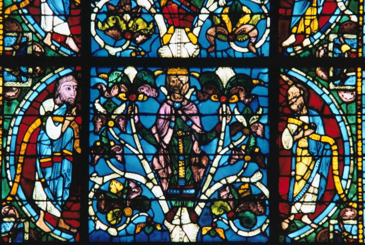 Koning Salomo, glas-in-lood, Kathedraal van Chartres, Frankrijk, 1145-1155(King Solomon, stained glass, Chartres Cathedral, France, 1145-1155)Unbekannt |