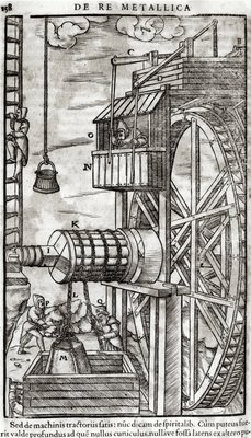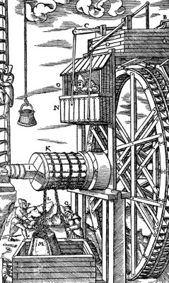 Omkeerbare hijs voor het optillen van leren emmers uit een mijnschacht(Reversible hoist for raising leather buckets from a mine shaft, 1556)Unbekannt |