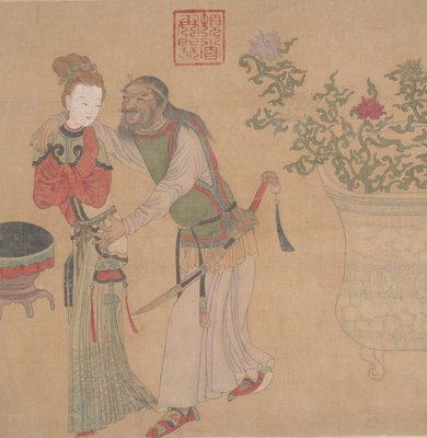 Tartaarse officier maakt blonde dame het hof (albumblad; inkt en kleur op zijde)(Tartar Officer Courting Blond Lady (album leaf; ink and color on silk))Unknown Artist |