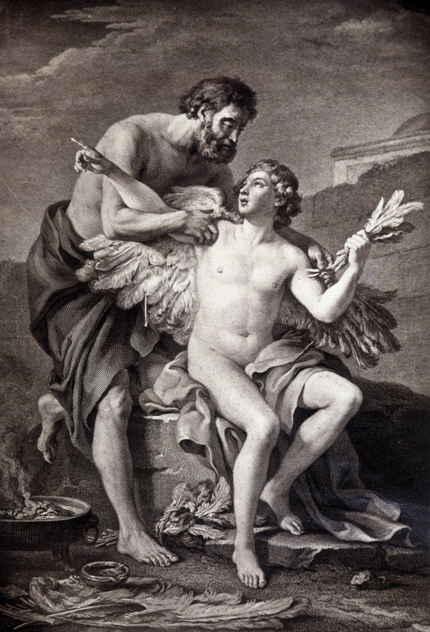 Daedalus en Icarus. 19e-eeuwse gravure.(Daedalus and Icarus. 19th century engraving.)Unknown artist |
