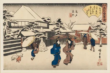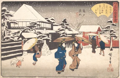 Sneeuw (Yuki), uit de serie "Beroemde plaatsen van Edo (Edo meisho)" Shiba Jimmei-schrijn, uit de serie Sneeuw (Yuki), uit de serie Shinmei-schrijn in Shiba (Shiba Shinmeigu), uit de serie "Beroemde Plaatsen in Edo (Edo meisho)" Beroemde plaatsen van Edo: Shiba Shinmei De Gion-tempel in de sneeuw (Gionsha setchu), uit de serie "Beroemde plaatsen in Kyoto (Kyoto meisho no uchi)" Sneeuw bij het Gion-heiligdom, uit de serie Beroemde Plaatsen in Kyoto Sneeuwzicht van Zojoji Tempel in Shiba, 1847-1852 Het Gion-heiligdom in de sneeuw (Gionsha setchu), uit de serie "Beroemde plaatsen in Kyoto (Kyoto meisho no uchi)" Shinmei-schrijn in Shiba Ochanomizu Sneeuw bij het Gion-heiligdom uit de serie Beroemde Plaatsen in Kyoto, midden 1830s Sneeuw Ochanomizu, november 1853 Station Narumi, Goyu, Tabibito Ryujo, ca. 1833-34 Sneeuw Goyu Yabu-straat aan de voet van Atago Hill (Atagoshita yabukoji), uit de serie "Honderd beroemde uitzichten van Edo (Meisho Edo hyakkei)" Het Gion heiligdom in de sneeuw Toeizan Tempel in Ueno, uit de serie Lentescène van Nakanocho in de nieuwe Yoshiwara (Shin Yoshiwara Nakanocho haru no kei), uit de serie "Nieuw geselecteerde beroemde plaatsen in Edo (Shinsen Edo meisho)" Het Gion-heiligdom in de sneeuw, ca. 1832 Kanbara: Avondsneeuw (Kanbara, yoru no yuki), uit de serie "Drieënvijftig stations van de Tokaido (Tokaido gojusan tsugi no uchi)," ook bekend als de Hoeido Tokaido Nacht Sneeuw bij Kambara: Drieënvijftig Stations van de Tokaido Een Sneeuwachtige Avond bij Kambara Station Nacht Sneeuw bij Kanbara, uit de serie Drieënvijftig Stations van de Tōkaidō