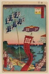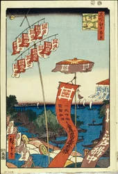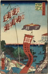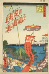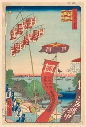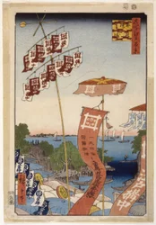 Kanasugi-brug en Shibaura. Honderd beroemde uitzichten van Edo, ca. 1858(Kanasugi Bridge and Shibaura. One Hundred Famous Views of Edo, c. 1858)Utagawa Hiroshige |