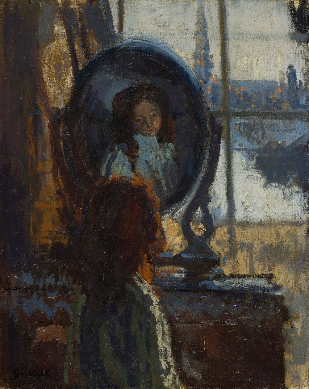 Meisje bij een spiegel, kleine Rachel, 1907(Girl at a looking-glass, little Rachel, 1907 )Walter Richard Sickert |