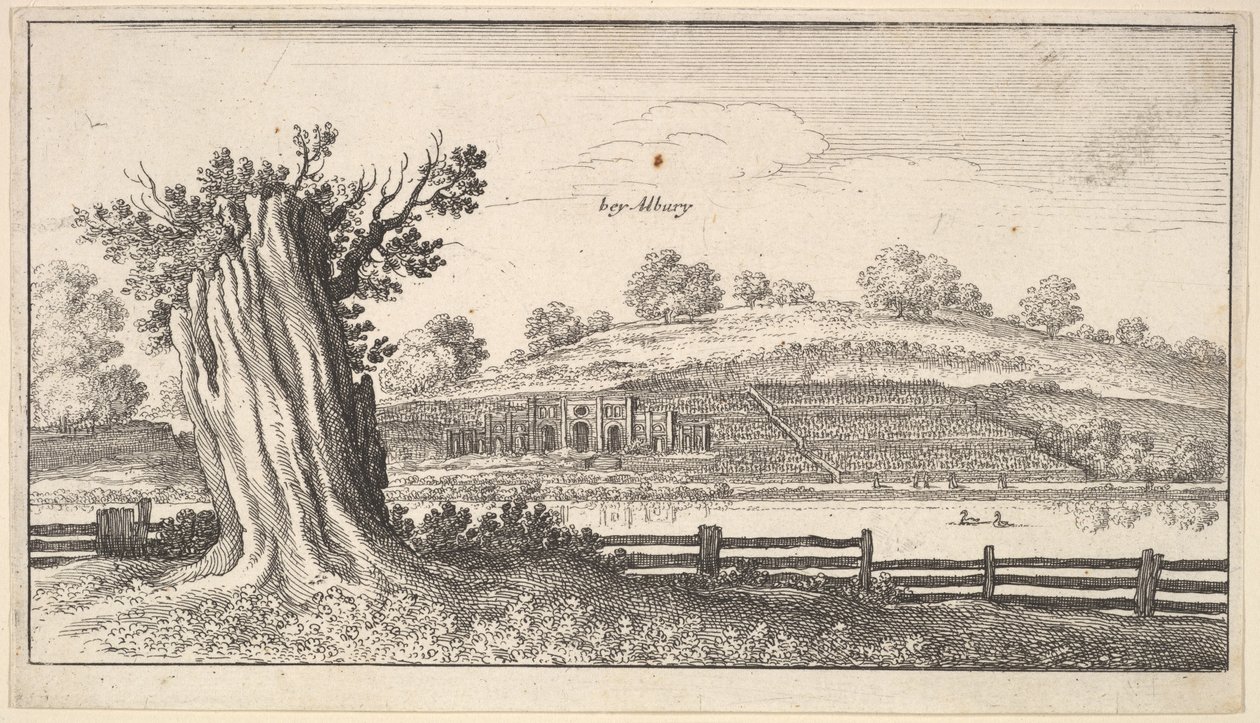 Albury met Boomstronk op de Voorgrond(Albury with tree-stump in foreground, 1625-77. )Wenceslaus Hollar |