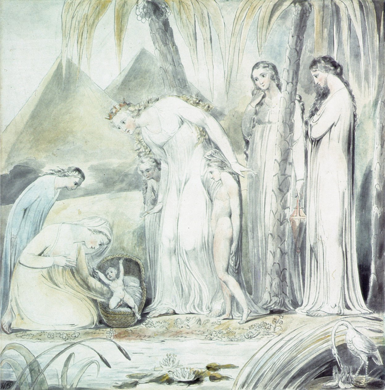 De compassie van de dochter van de farao of De vondst van Mozes(The compassion of Pharaoh's Daughter or The Finding of Moses, 1805 (pen und wc over pencil))William Blake |