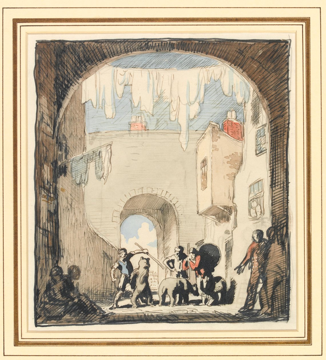 Een straattafereel(A street scene (graphite, pen and Indian ink and watercolour washes on paper))William Orpen |