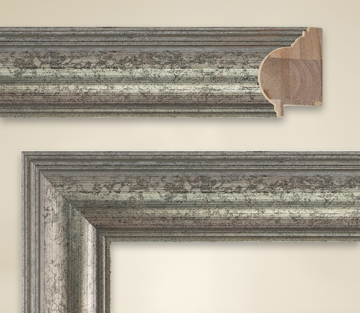 | Italian Chick verspreidt de fotolijst Marianna, die ook overtuigt met perfecte rondingen en met een individuele kleurenmix die op het echte houten frame wordt toegepast. In hoogte is het 38 millimeter en 59 millimeter breed, die worden gecombineerd in een geweldig verwerkt ontwerp. Marginaal toont Marianna alleen aan de binnenkant, waarmee het in te lijsten beeld aansluit. Alle andere vormen in het hout zijn afgeronde stroken. De grote, centrale hoofdbalk wordt vergezeld door een binnen en een aan de buitenrand door nog vier tralies. Het hele ensemble is afgewerkt met een zilver, dat zich op verschillende plaatsen in verschillende nuances laat zien. Hier en daar voorgesteld als helder zilver, vallen af en toe roodachtige en blauwachtige zilveren aandelen op van het geheel. Deze glanzende reflecties ontvingen ook een zwarte tinctuur aangebracht met spons - intenser op de hoofdbalk dan op de smallere metgezellen. De zilverglans wordt niet aangetast, integendeel, de tinctuur geeft Marianna een antieke charme. |